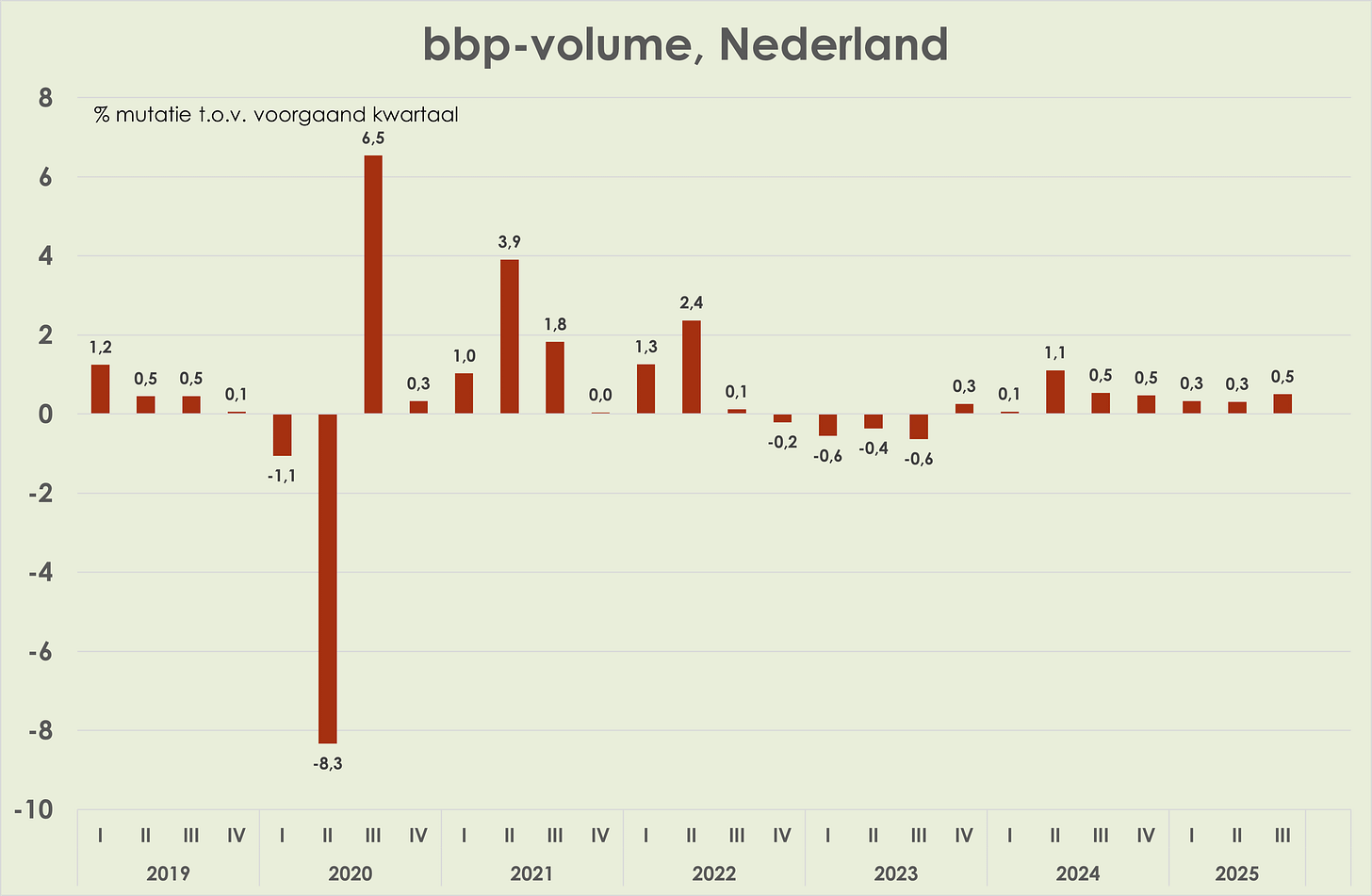 (zie grafiek hieronder).63. Ik verwacht voor Nederland en het eurogebied een beperkte bbp-ontwikkeling in het 4e kwartaal van 2025 en in de eerste helft van 2026, mede door handelsspanningen met de VS. De Nederlandse economische groei zal hoger blijven dan gemiddeld in het eurogebied.